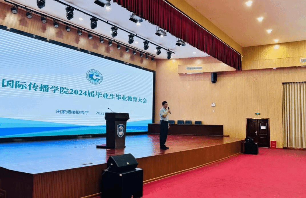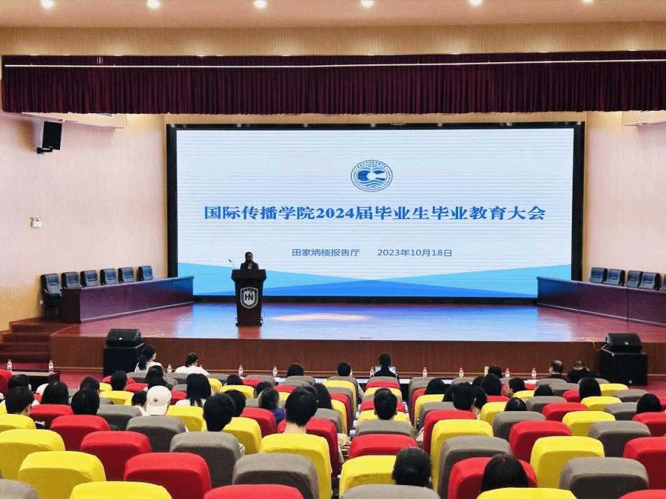 10月18日下午,Beat365唯一官方网站国际传播学院2024届毕业生毕业教育会议在海甸校区田家炳楼二楼报告厅举行,2024届全体研究生和本科生参加毕业教育大会,会议由党总支书记谢辉凡主持。