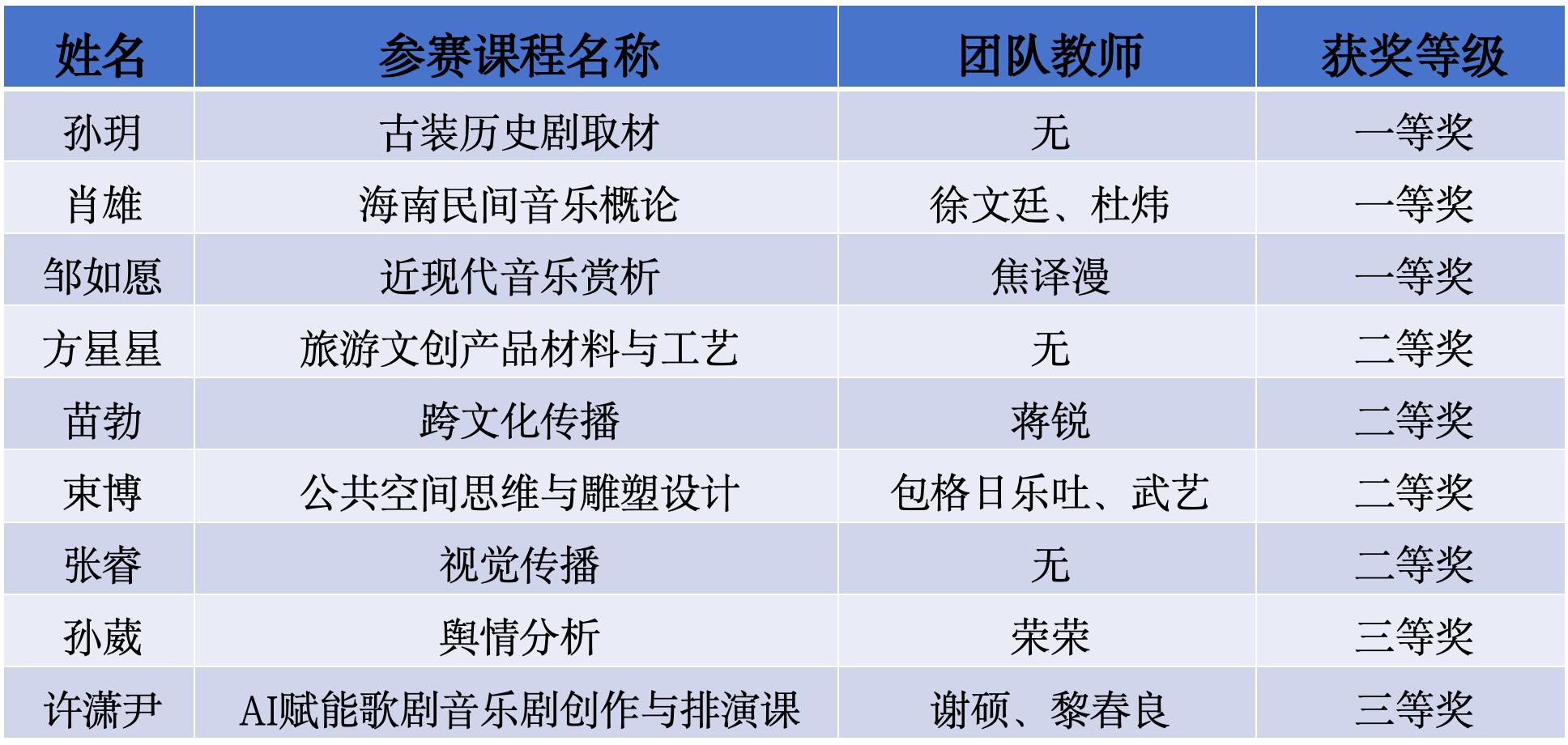 Beat365官网教师结合自身教学实践,围绕“AI赋能课程建设”,将AI图像、视频生成、剪辑、三维建模、数字人、大数据等技术与中国优秀传统文化、音乐、设计、大众传播等议题结合,积极参赛,斩获佳绩。孙玥、肖雄、邹如愿荣获一等奖,方星星、苗勃、束博、张睿荣获二等奖,孙葳、许潇尹荣获三等奖。