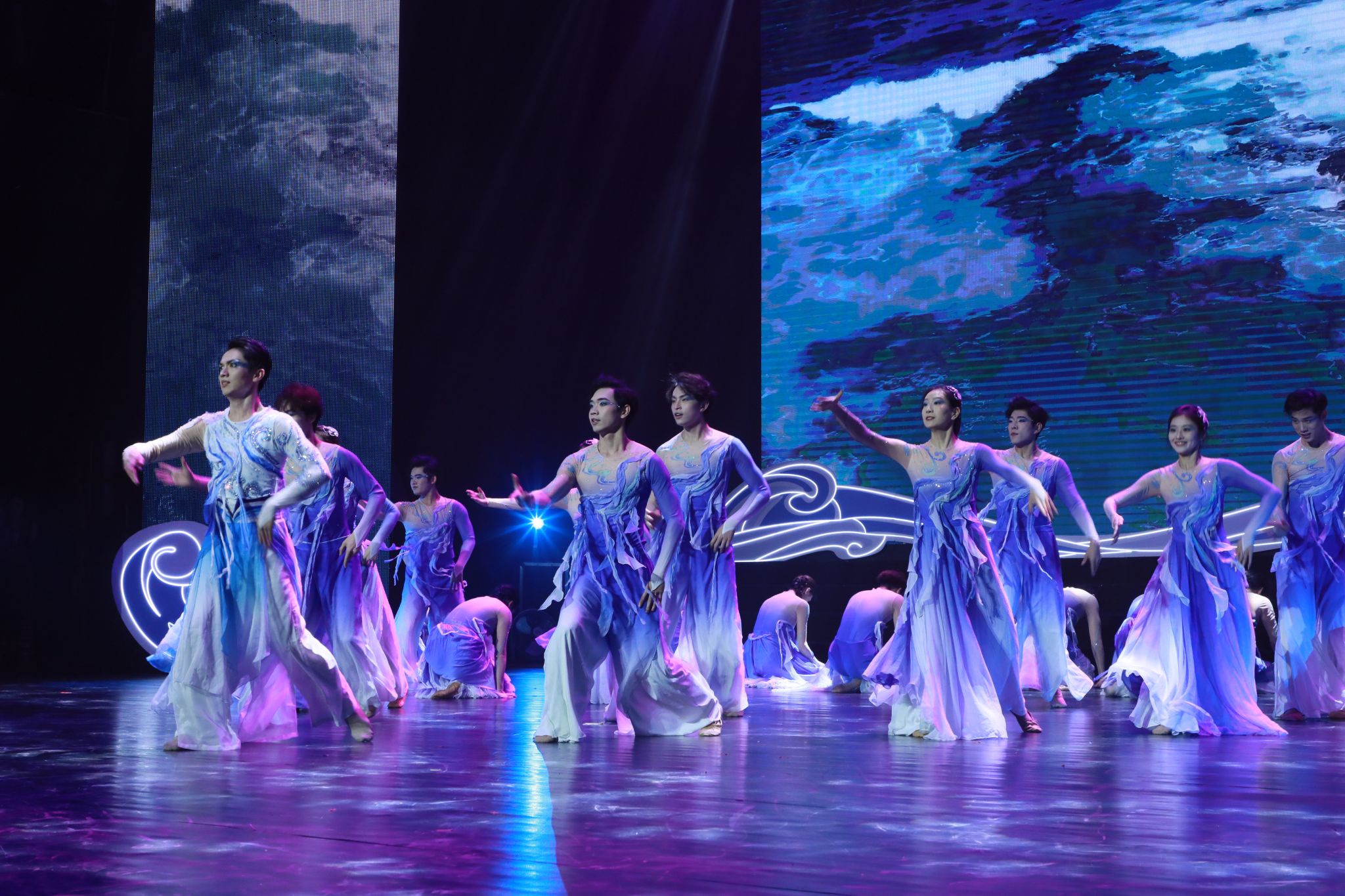 晚会在充满激昂节奏与律动的黎族传统大鼓舞与展现大海壮阔之美与力量之美的舞蹈《大海的邀请》中拉开帷幕。
