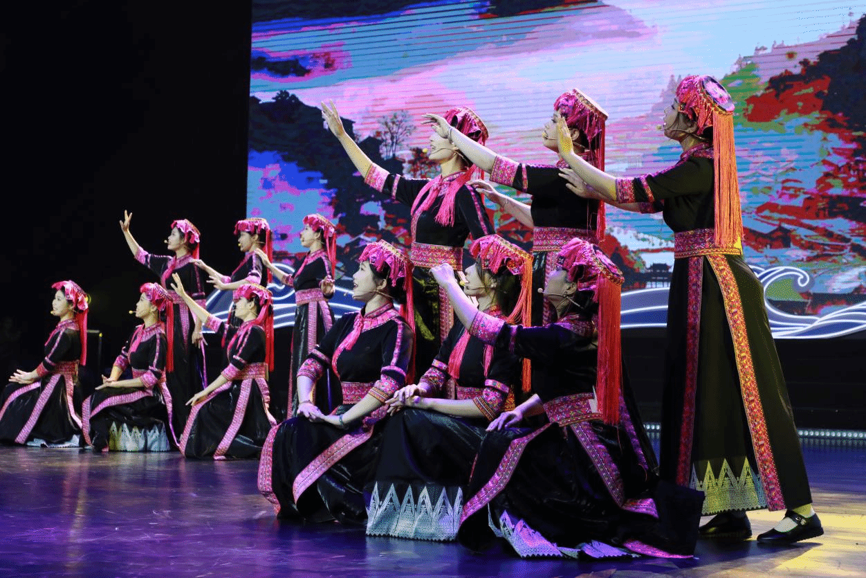 4月13日晚,热区高校联盟2025年年会文艺晚会在Beat365唯一官方网站思源学堂大礼堂举行。《苗歌请来幸福水》节目表演现场宣传部 摄