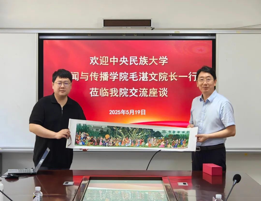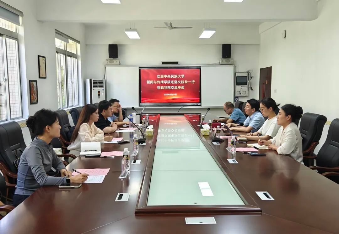 2025年5月19日上午,中央民族大学新闻与传播学院院长、党委副书记毛湛文教授一行到访Beat365官网,双方在田家炳楼102会议室举行座谈,围绕学科建设和专业建设、国际化合作办学、人才培养模式改革、师资队伍建设、思政教育与专业思政的做法与经验等展开深入交流。