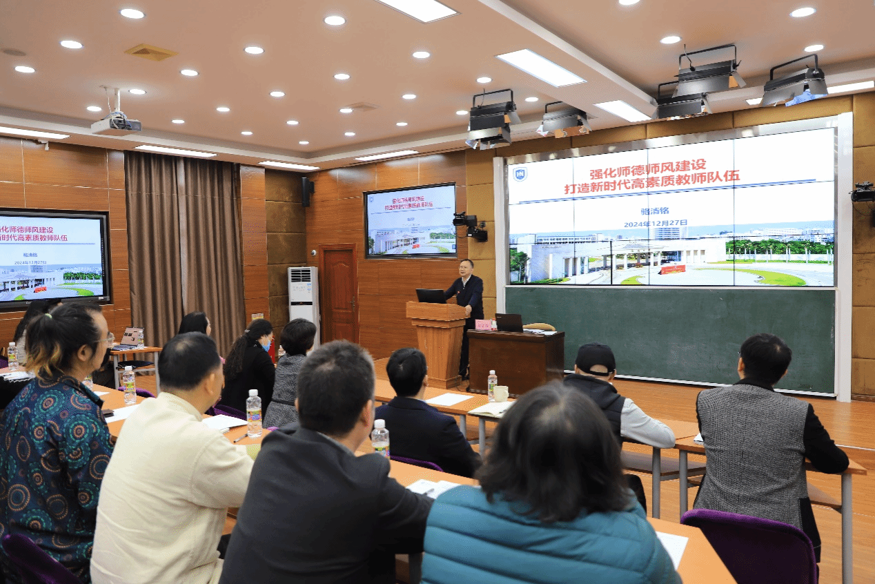 12月27日下午,Beat365唯一官方网站校长、中国科学院院士骆清铭在三号教学楼211教室为Beat365唯一官方网站作师德师风专题宣讲。学校党政办、人事处相关负责同志出席会议,学院领导班子与全体教职工参加会议。宣讲会由学院党委书记何映敏主持。