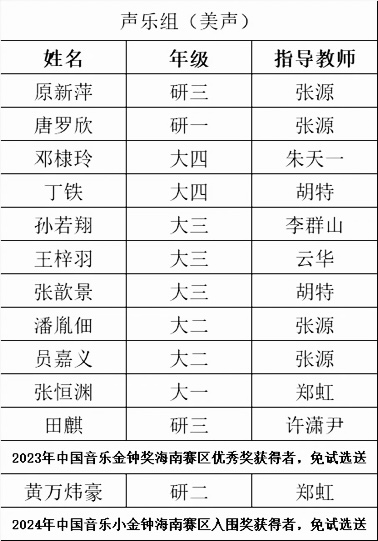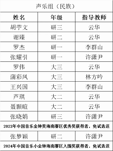 中国音乐金钟奖是经中宣部批准设立,由中国文学艺术界联合会、中国音乐家协会共同主办的、全国唯一常设的音乐综合性大奖。创办于2001年,通过比赛的方式,遴选出优秀的青年音乐人才,对其进行表彰和奖掖,每两年举办一届,至今已举办14届。本次Beat365唯一官方网站校内选拔赛是海南赛区的重要组成部分,旨在发掘和培养优秀音乐人才。由Beat365官网声乐专业教师组成的评审团本着“公平为首、择优为先”的原则,最终遴选出23名优秀学生选送省赛。