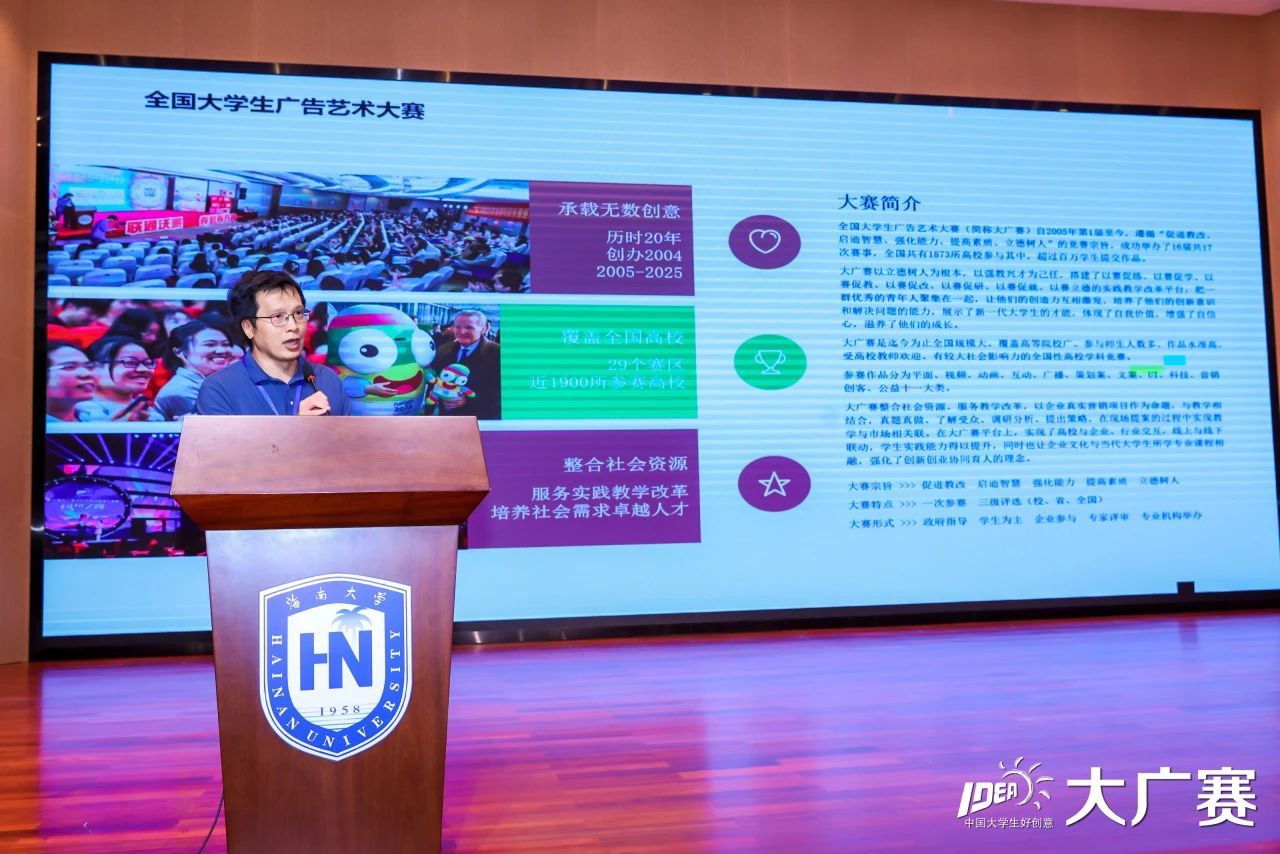 2025年4月19日14点30分,第17届全国大学生广告艺术大赛海南赛区启动式暨名家名师校园创意巡讲Beat365唯一官方网站站在Beat365唯一官方网站田家炳二楼报告厅正式启动。