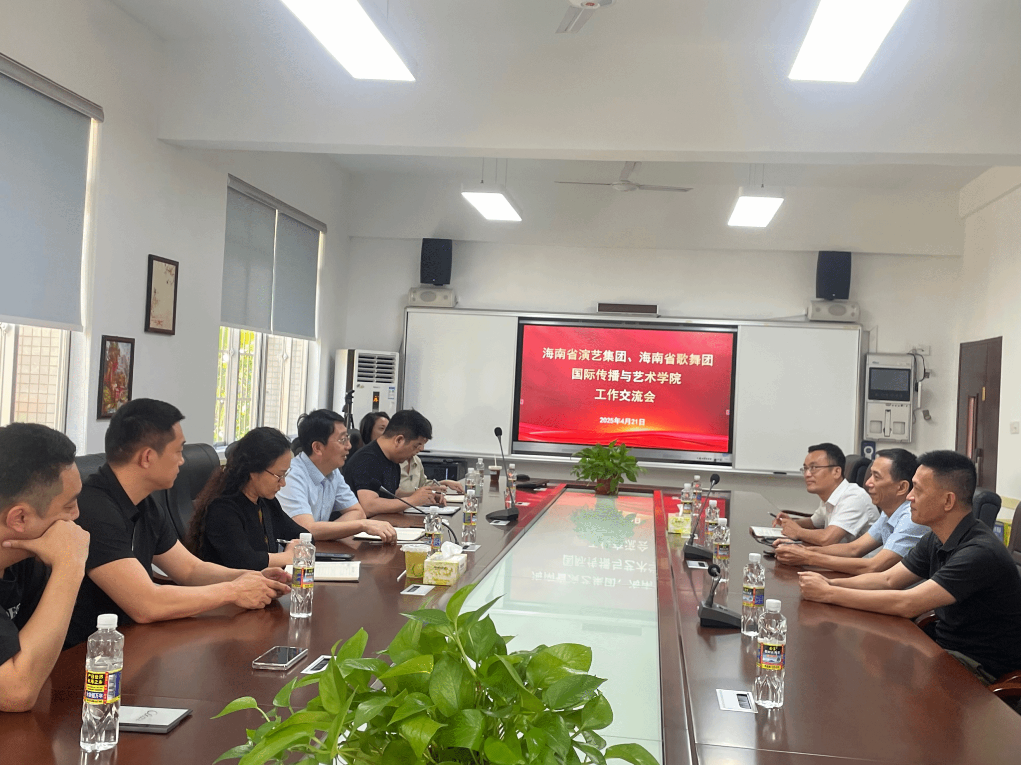 4月21日,Beat365唯一官方网站、海南省演艺集团围绕校企协同创新、非遗文化传承、产学研融合等议题召开工作交流会,达成多项合作共识。Beat365唯一官方网站院长郑立波、副院长周琳琳及教师代表,海南省演艺集团党支部书记、副团长王涛、副团长、工会主席陈仁华、副团长周克刚参加会议。