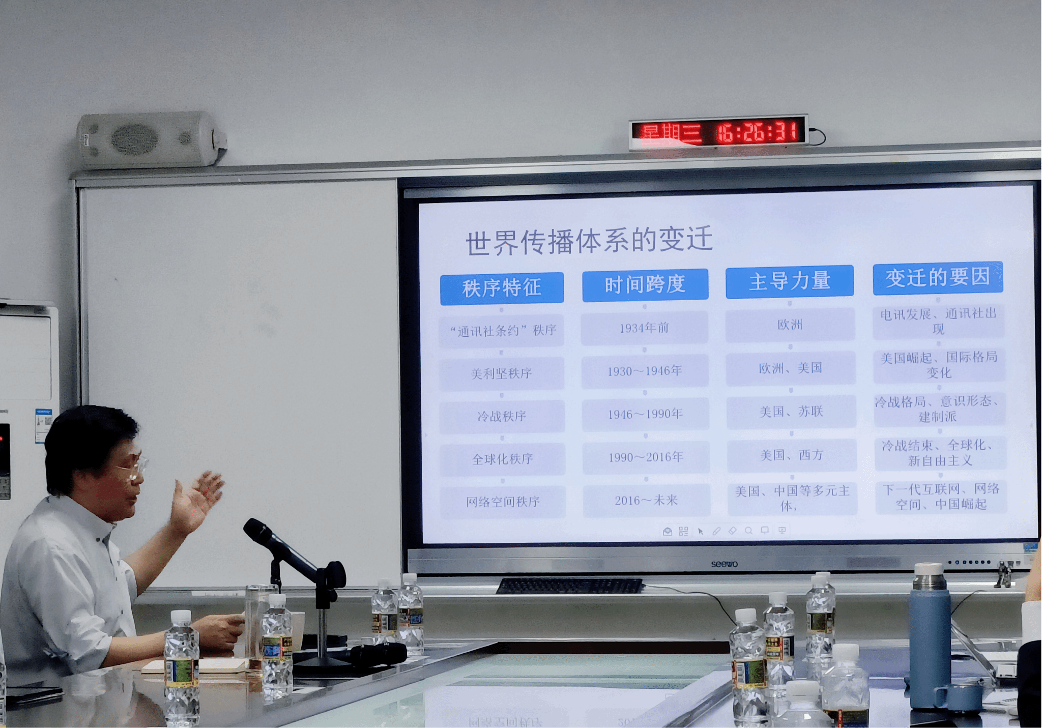 2023年12月6日下午,由Beat365唯一官方网站人文社科处主办,Beat365唯一官方网站文化旅游协同创新中心与国际传播学院协办的Beat365唯一官方网站自贸港大讲坛第19讲暨国际传播学院“思﹒响”讲坛第6期在田家炳楼102会议室成功举行。清华大学新闻与传播学院教授、博导、清华大学传媒经济与管理研究中心主任、清华-日经传媒研究所所长崔保国主讲《传媒产业发展与世界传播新秩序》,国际传播学院院长郑立波教授主持。