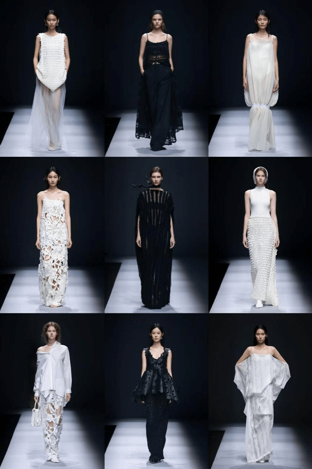 刘洪超本季作品秉持“以流动的纤维,塑造生活艺术”理念,通过镂空钩织增强服装空间感,搭配鹅卵石元素编织包袋与手工吊坠,呼应“河流”意象,传递了“真正的自由,是从容地选择成为自己”的设计初衷。其个人品牌Liu Hongchao以针织产品为核心,致力于探索现代女性的生活艺术,在材料与织物中寻找生活的无限可能。