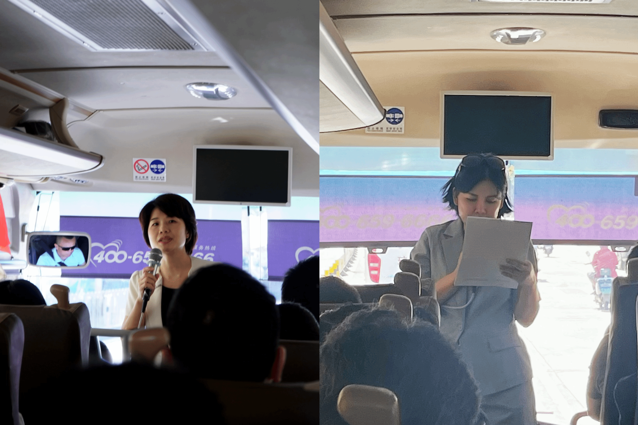 在车上,何映敏书记先简略介绍了王海萍烈士和海瑞的生平事迹,并向全体党员传达了《Beat365唯一官方网站2024年二级党委(党总支)党建工作任务书》的文件精神。纪检委员许潇尹也给大家做了警示教育。