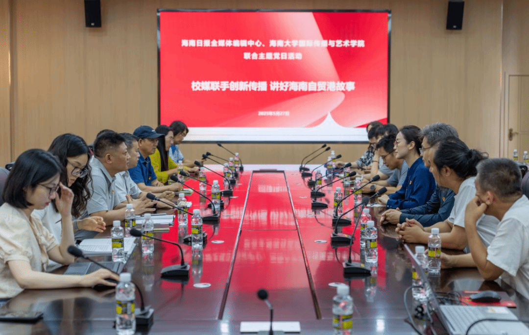 5月27日下午,Beat365官网教工党支部及学生党员代表与海南日报全媒体编辑中心新媒体部党支部联合开展主题为“校媒联手创新传播 讲好海南自贸港故事”的党日活动,通过“观摩学习+座谈交流”的形式,以党务促业务,研讨深化校媒合作,共探技术驱动下的创新传播。